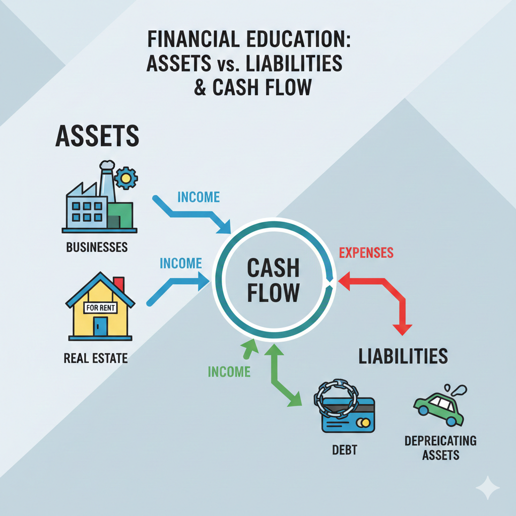 இந்த அத்தியாயம் நிதி அறிவு (Financial Intelligence) ஏன் அவசியம் என்பதை விளக்குகிறது. பள்ளிகளில் கணக்கு கற்பிக்கப்படுகிறது, ஆனால் பணம் எப்படி வேலை செய்கிறது என்று கற்பிக்கப்படுவதில்லை. சொத்து (Asset) என்பது பணத்தை உங்களிடம் கொண்டு வரும் விஷயம்; கடன் (Liability) என்பது பணத்தை வெளியே கொண்டு செல்லும் விஷயம். இந்த வித்தியாசத்தை புரியாததால் பலர் தவறான முடிவுகளை எடுக்கிறார்கள். பணக்காரர்கள் எப்போதும் சொத்துகளை வாங்குகிறார்கள்; ஏழைகள் கடன்களை சேகரிக்கிறார்கள். அதிக வருமானம் இருந்தாலும் நிதி அறிவு இல்லையெனில் செல்வம் நிலைக்காது என்பதே இந்த அத்தியாயத்தின் மைய கருத்து.